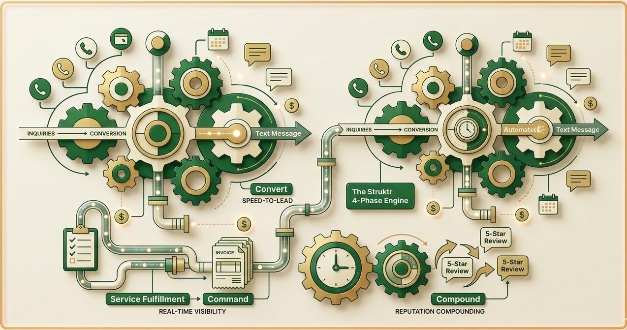 Automated growth. We turn every happy customer into a 5-star review, referral, and re-engagement trigger. We ensure your best customers find you first and return to you often—automatically.